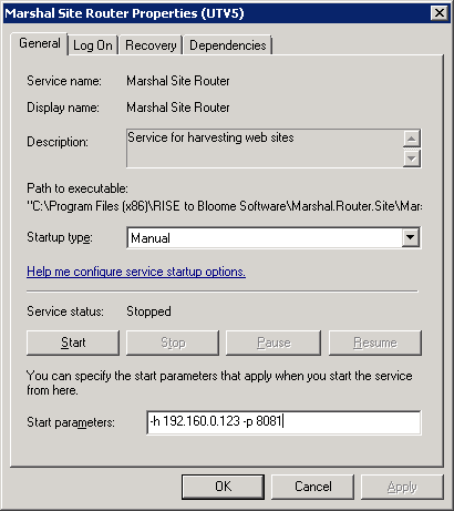 The Marshal Site Router is a multithreaded windows service for harvesting web sites or individual web pages. The router can follow links to harvest entire web sites. The router will not follow external links, i.e. the router will not harvest pages that are located on another domain than the start page.
